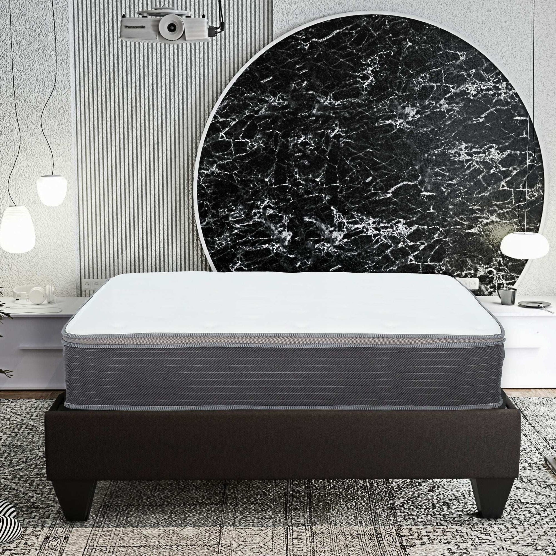 10 Full Size Hybrid Mattress In A Box, Gel Memory Foam Mattress With Pocket Coil Base - Gray / White
