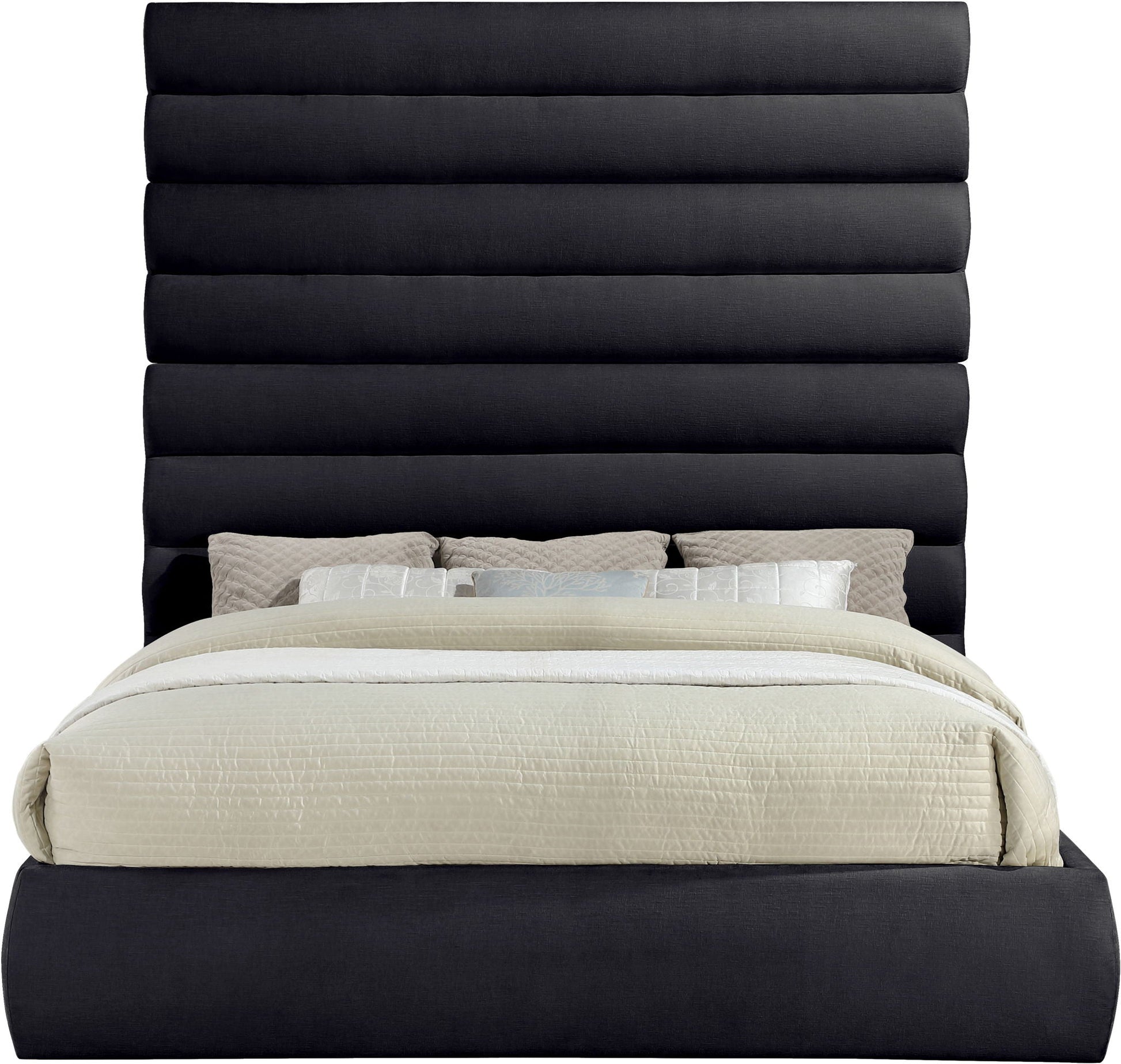 Adam - Chenille Fabric Bed With 89 Headboard, Full, Beige