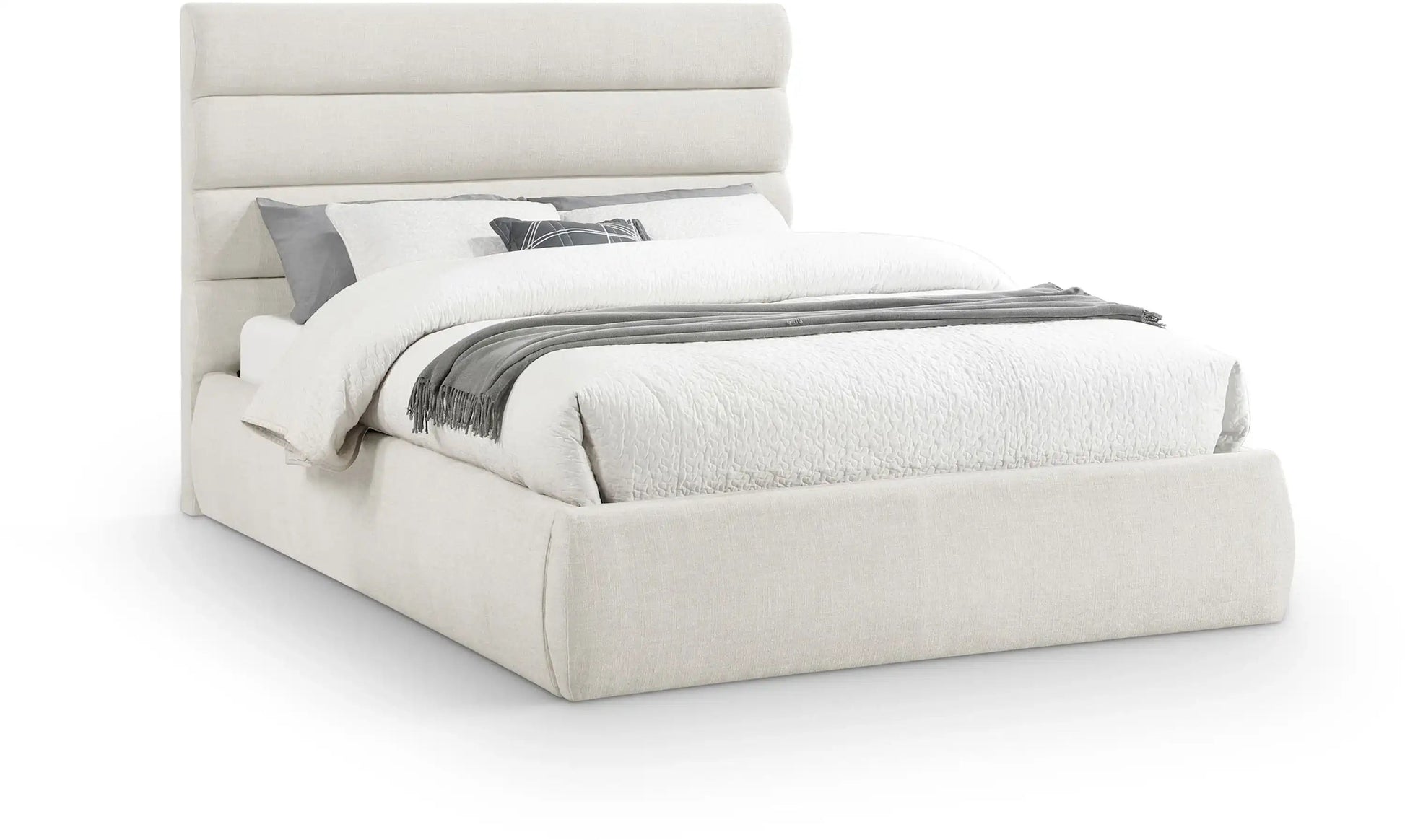 Adam - Linen Fabric King Bed With 52' Headboard - Cream