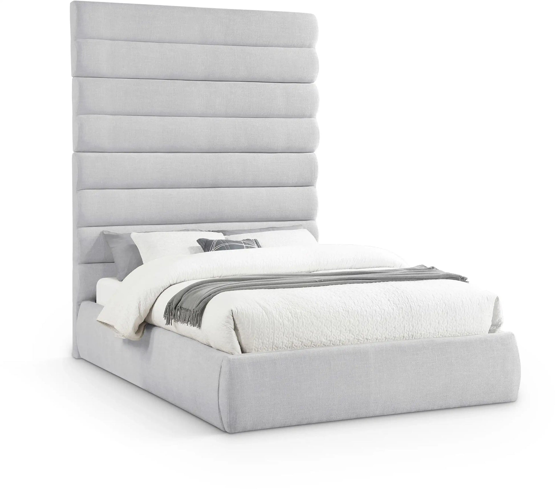 Adam - Linen Fabric King Bed With 89' Headboard - Gray
