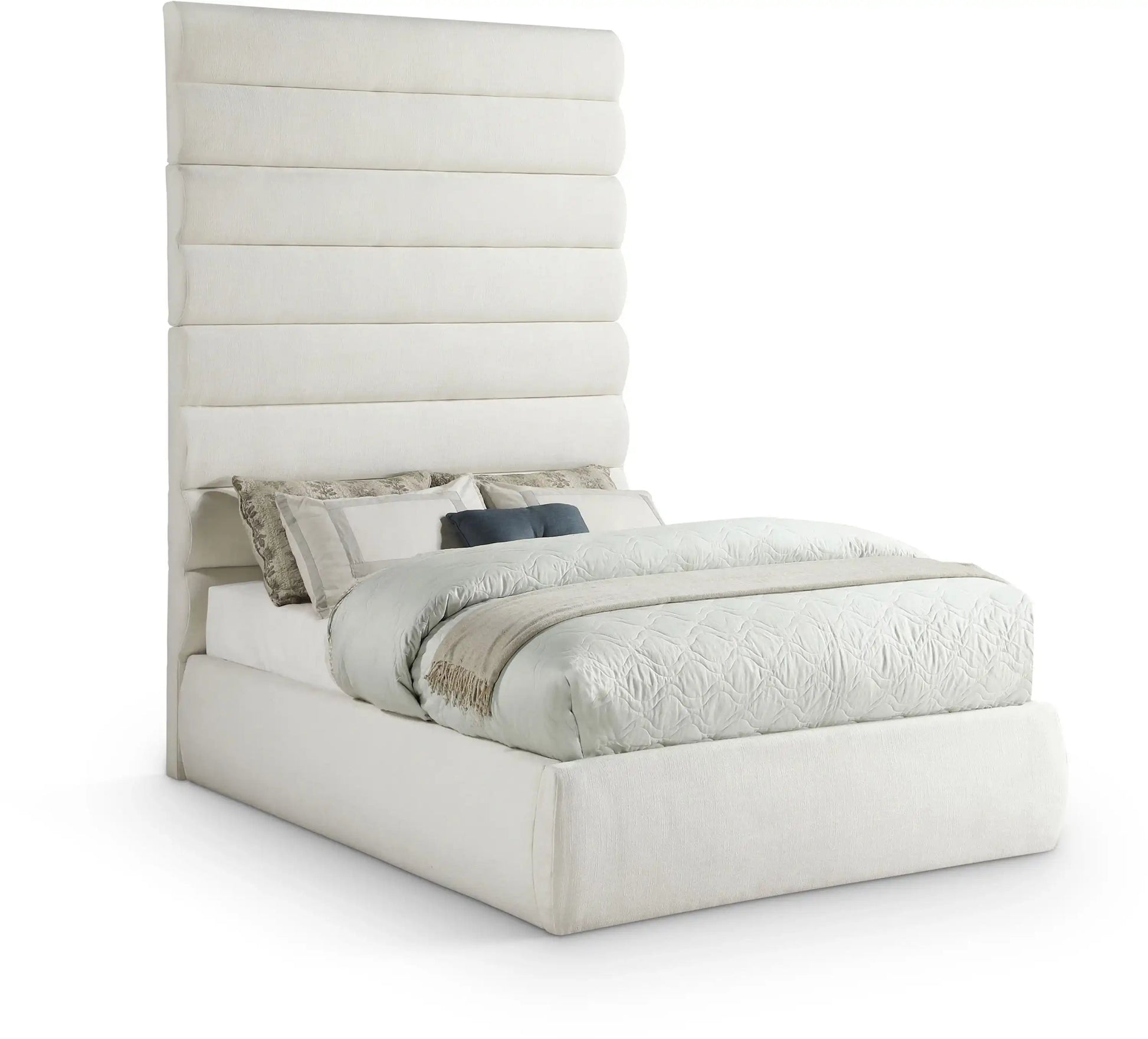 Adam - Linen Fabric King Bed With 89' Headboard - Cream