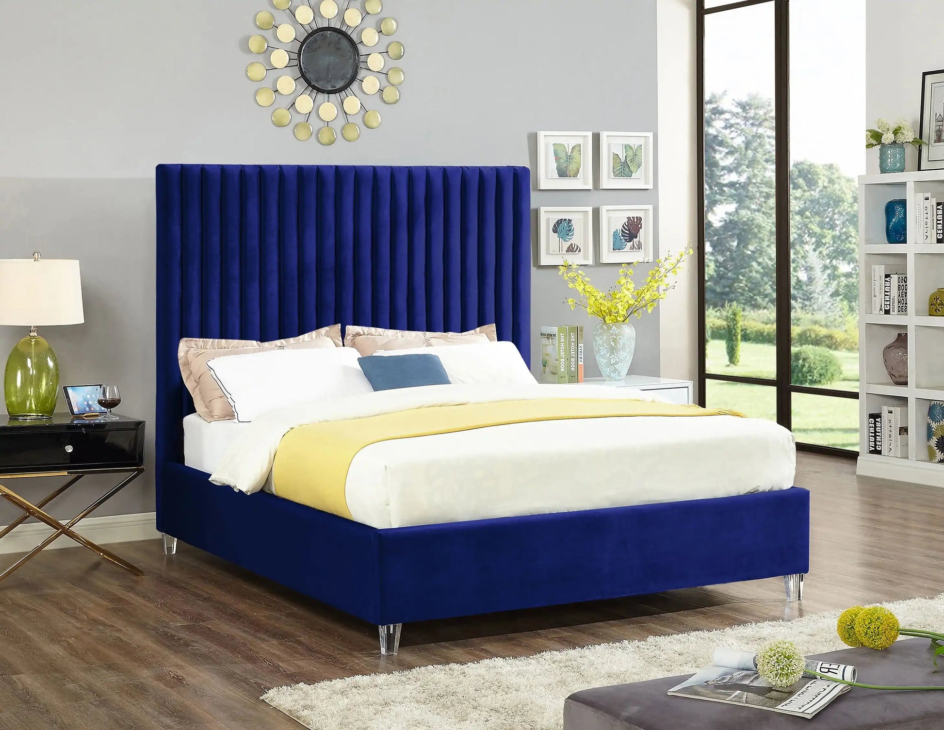 This bed frame is designed for use in a bedroom and supports a compatible mattress for sleeping.