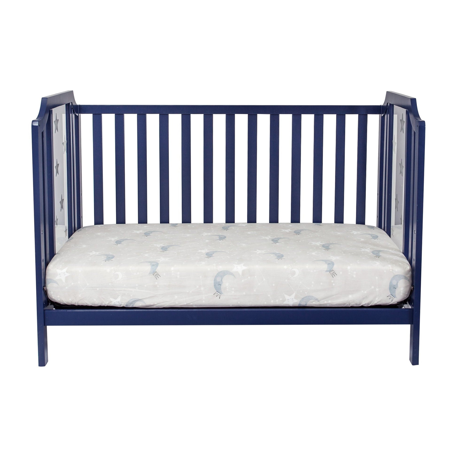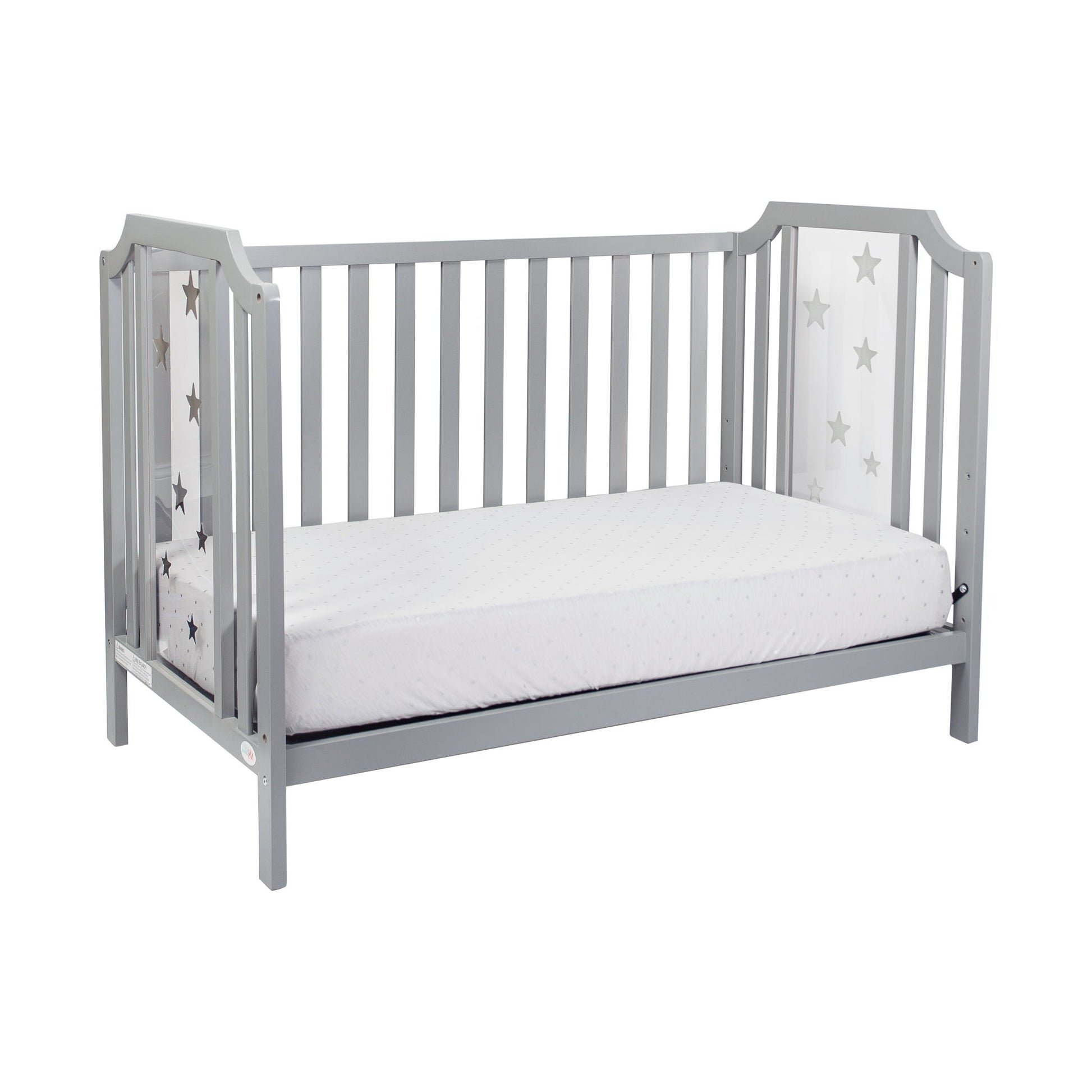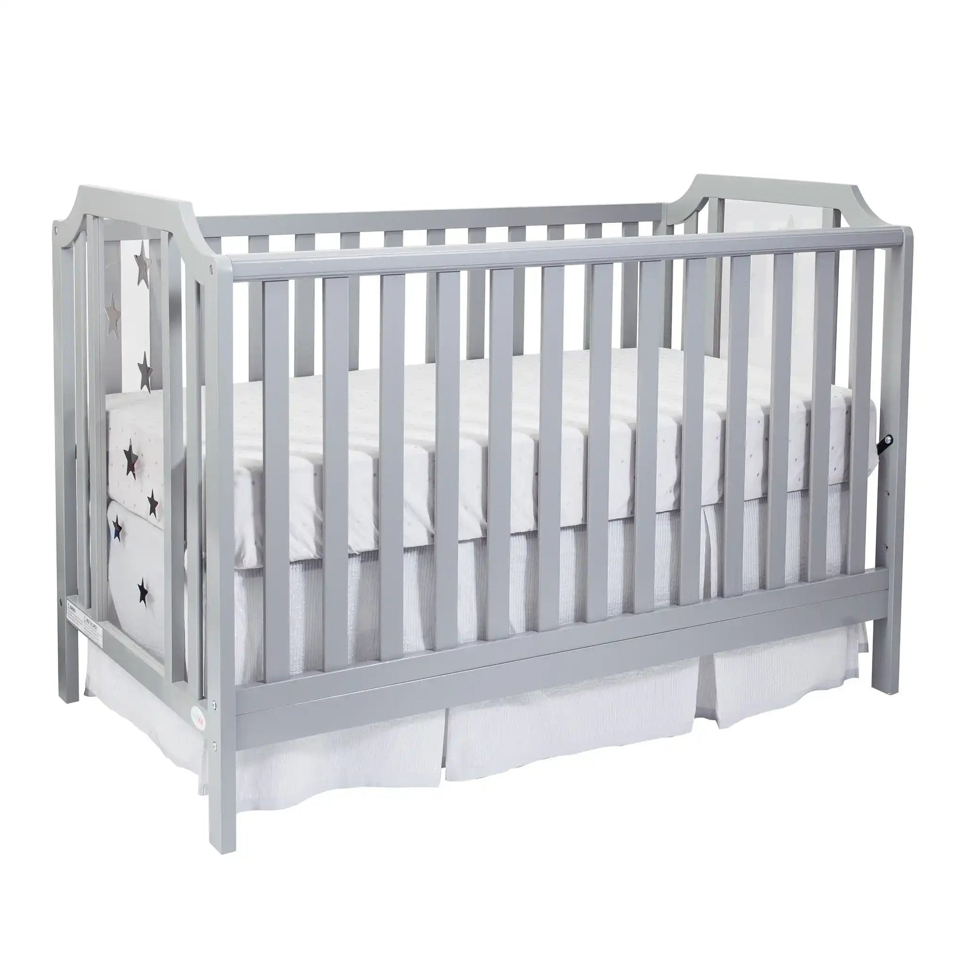 This crib is designed for use in a nursery or bedroom and provides a dedicated sleeping space for infants.