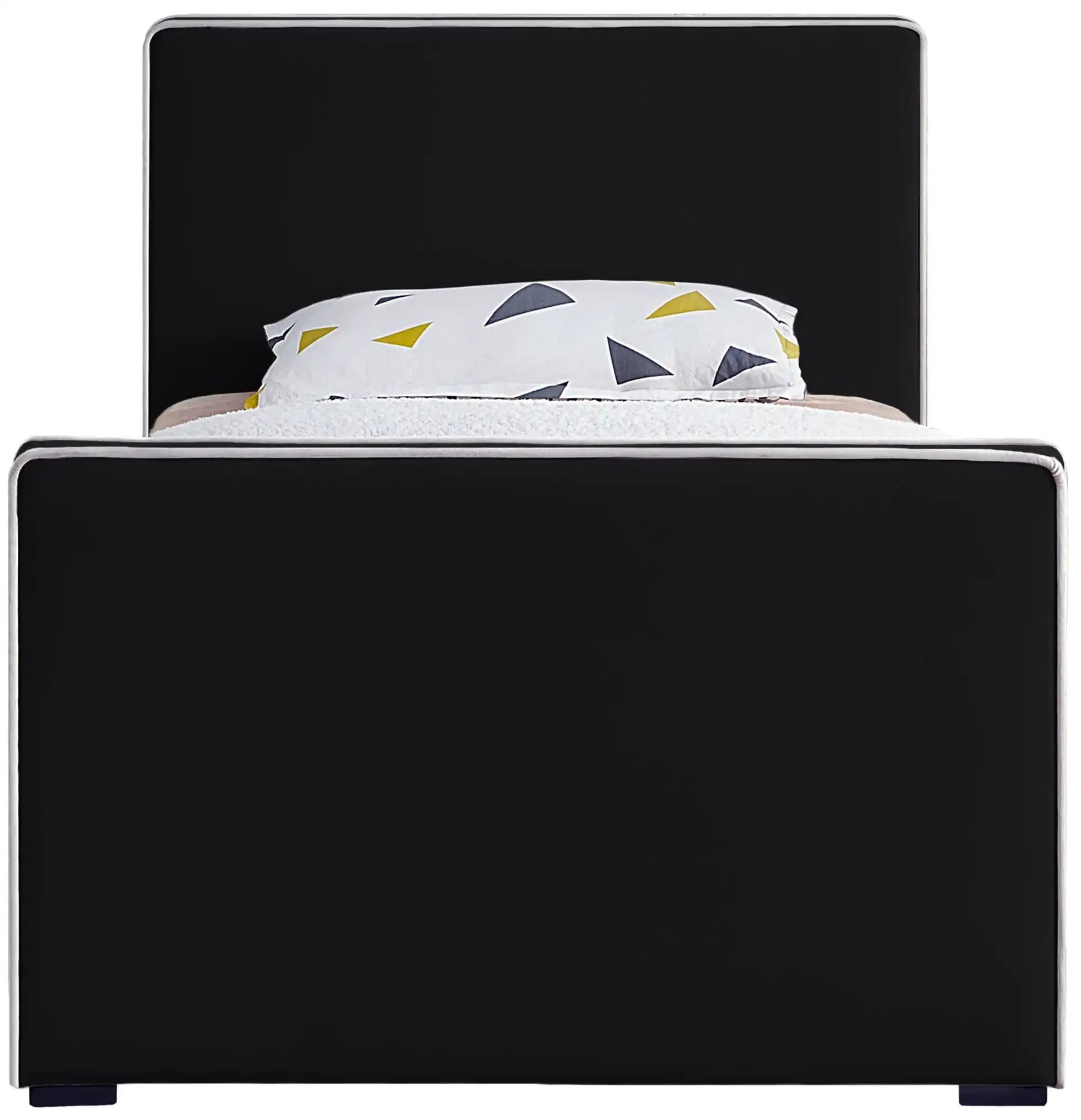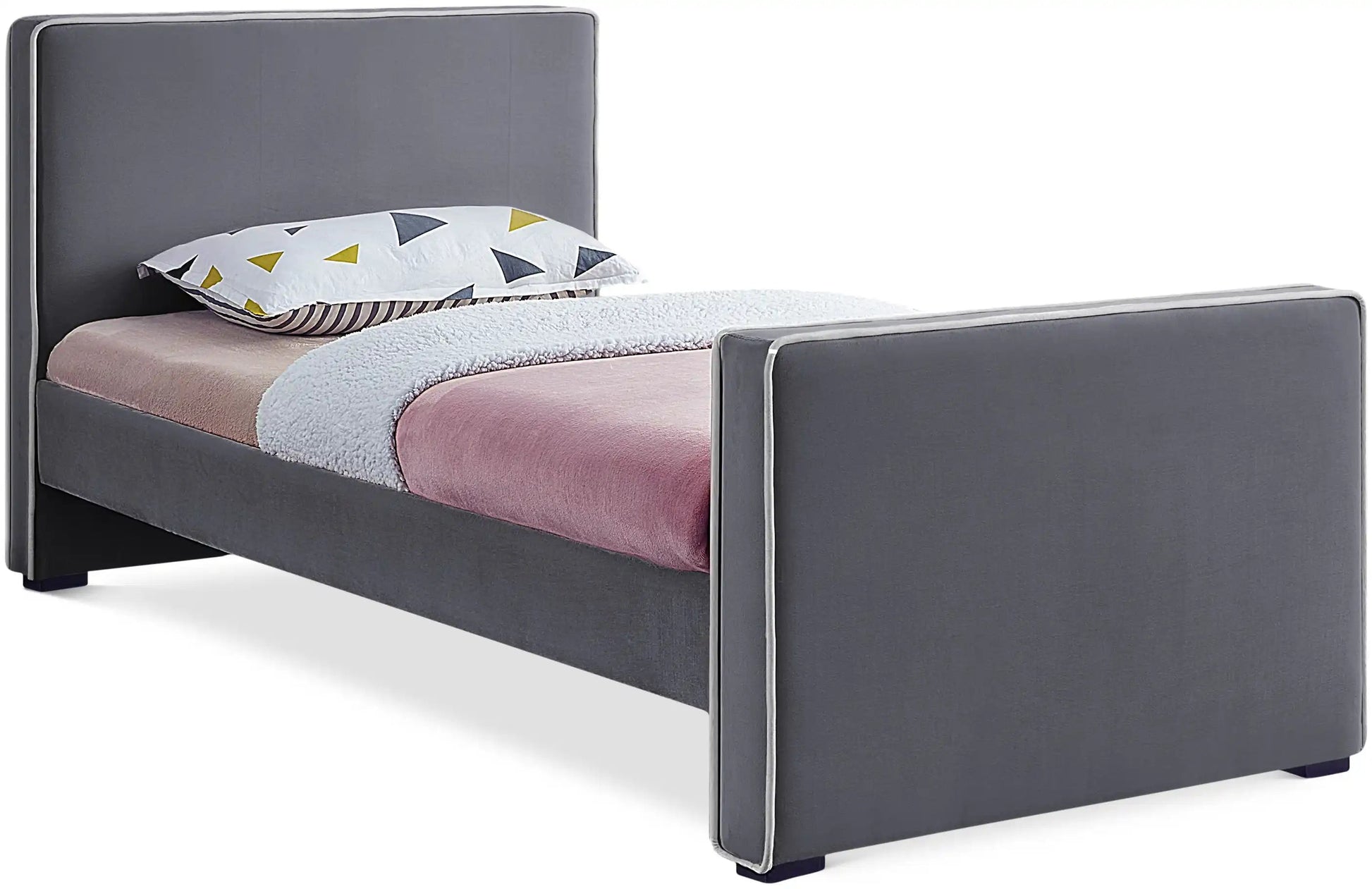 Lend your bedroom an elegant look with this Dillard velvet bed. Live out your velvet fantasy with this bed's soft beige velvet upholstery that runs the full length of the bed from headboard to footboard and is trimmed with velvet piping in a contrasting color for a contemporary vibe.