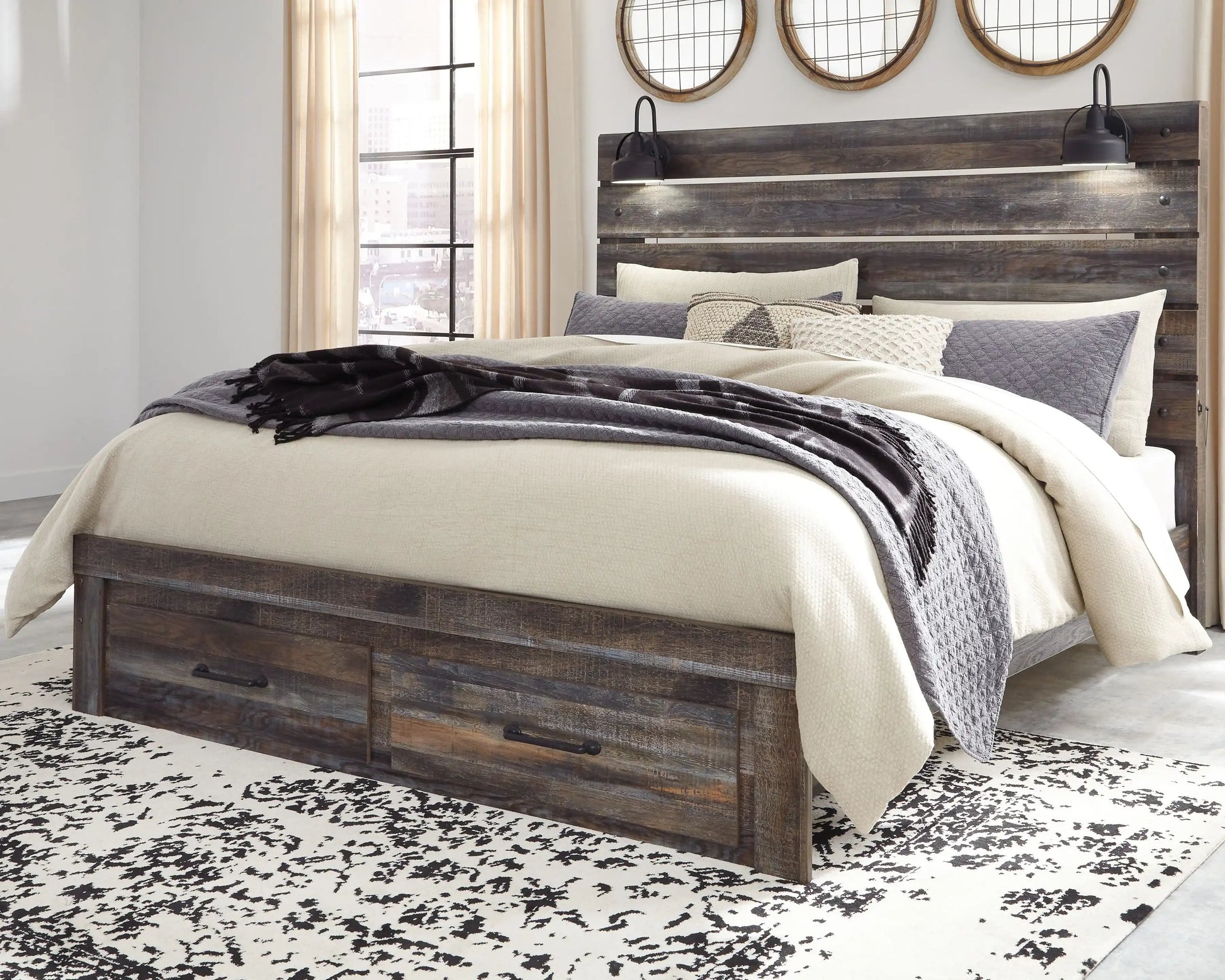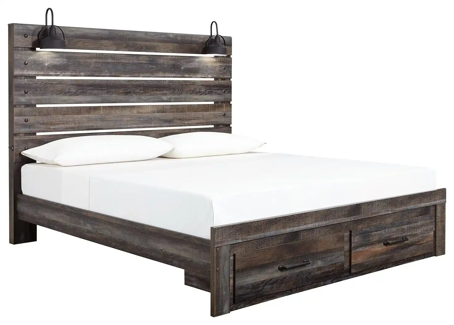 Drystan - King Panel Bed with 2 Storage Drawers - Brown / Beige