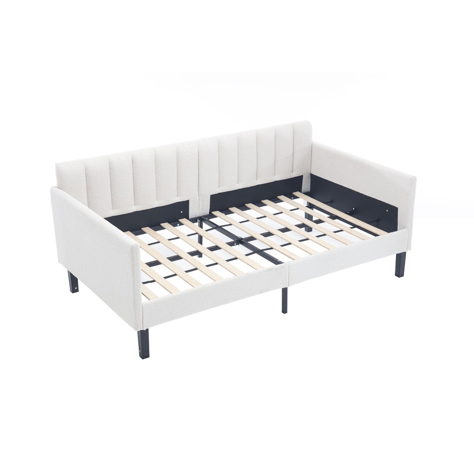 Elena - Boucle Upholstered Daybed, Ribbed Tufted Backrest, Twin, Beige