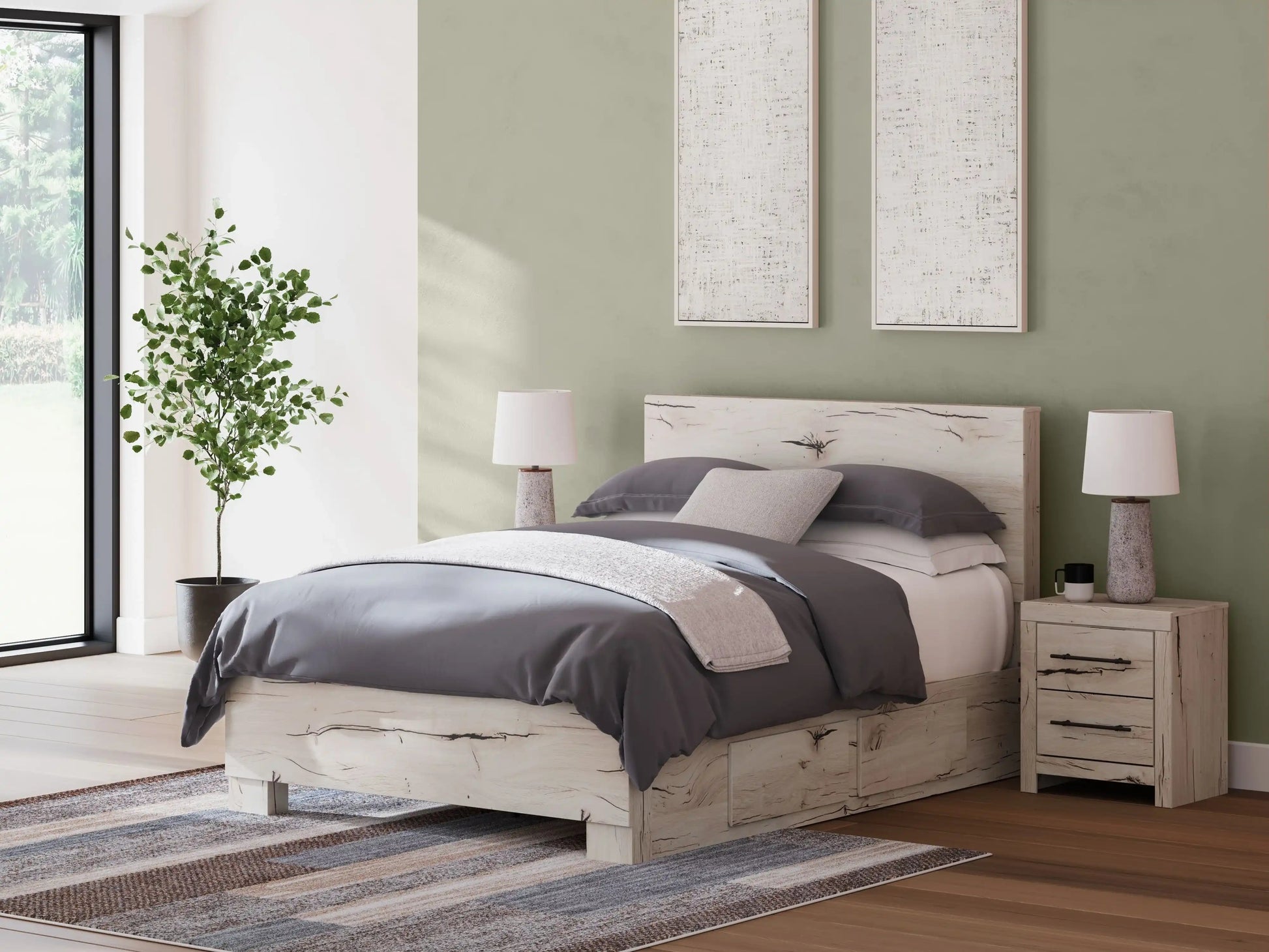 Lawroy - Full Panel Bed With 2 Under Bed Storage Units - Light Natural