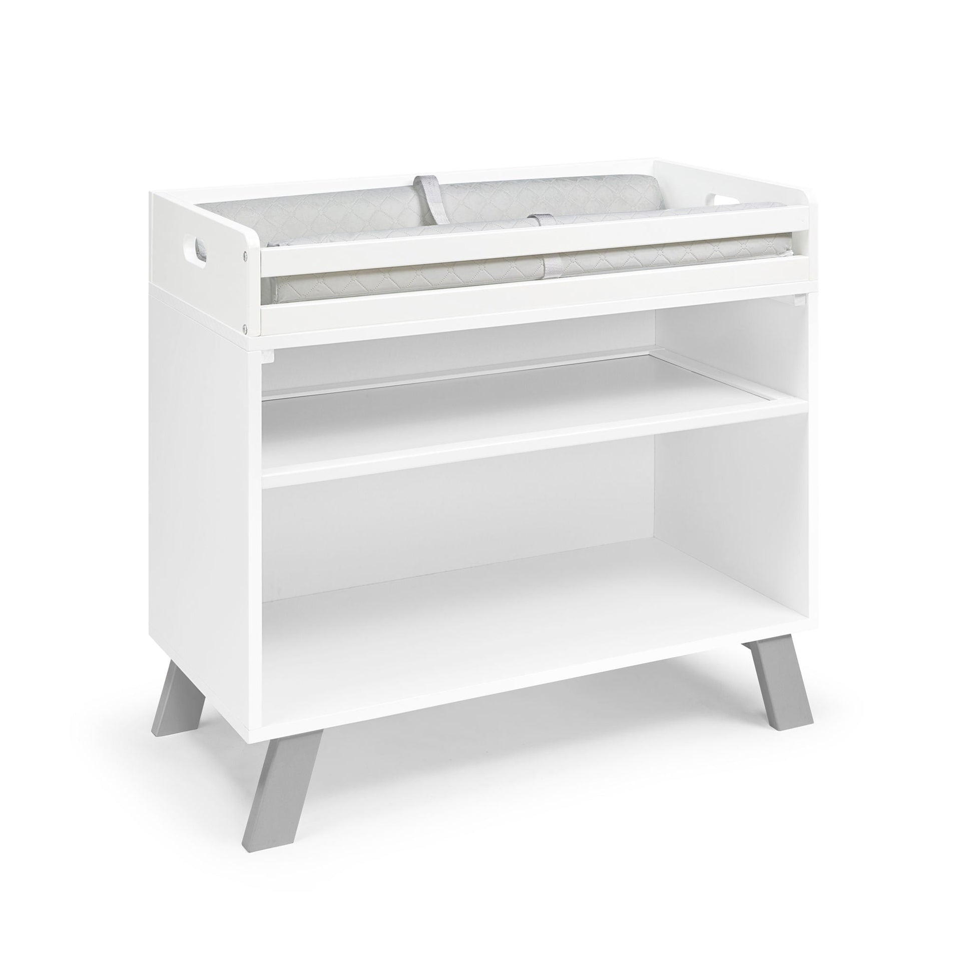 This changing table or station is designed for use in a nursery or bedroom to support a changing pad and baby care items.