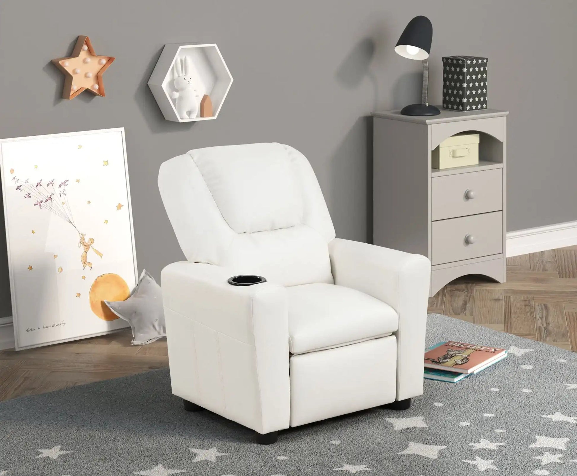 Marisa - Leather Kids Recliner Chair With Cupholder - White