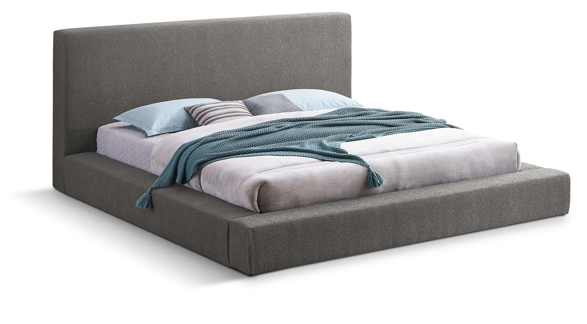 Go for an impressive new look in the bedroom with this Terra boucle fabric bed. This low-profile bed features a slightly high headboard along with thick side rails and footboard-all upholstered in rich boucle fabric for a luxe look you'll fall in love with. This contemporary bed is bound to cause a stir in the master suite or other bedroom where it instantly becomes the star of the show when paired with the furnishings of your choice.